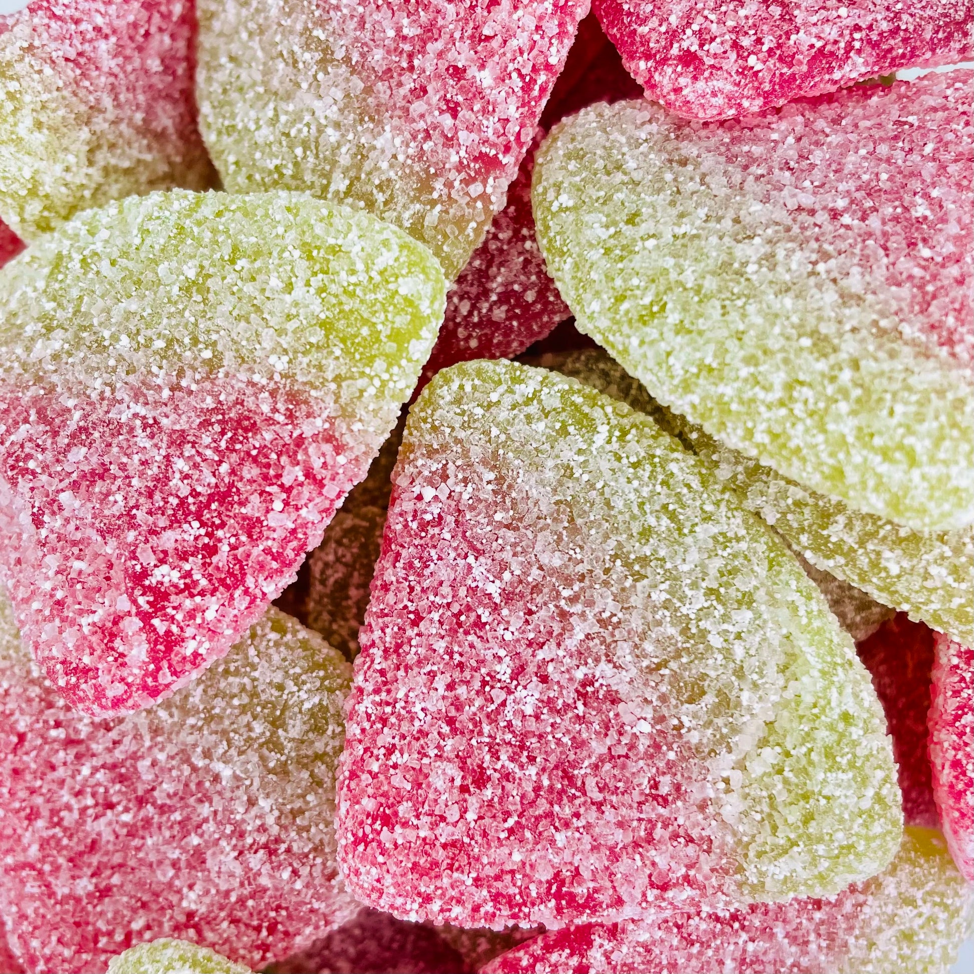 Sour tangy sugar coated gummy sweets packing a power full melon flavour.